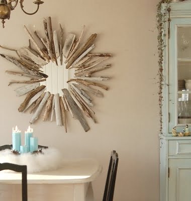 ... and this is the one I'd like to make (image from a back issue of Better Homes and Garden). I know I sound like a broken record, but the beaches here in RI are not exactly driftwood rich. I can wait..., and hopefully by the time I have my bundle together I also have a step by step tutorial. Perhaps you're going to make this sunburst mirror and share the how to!?
